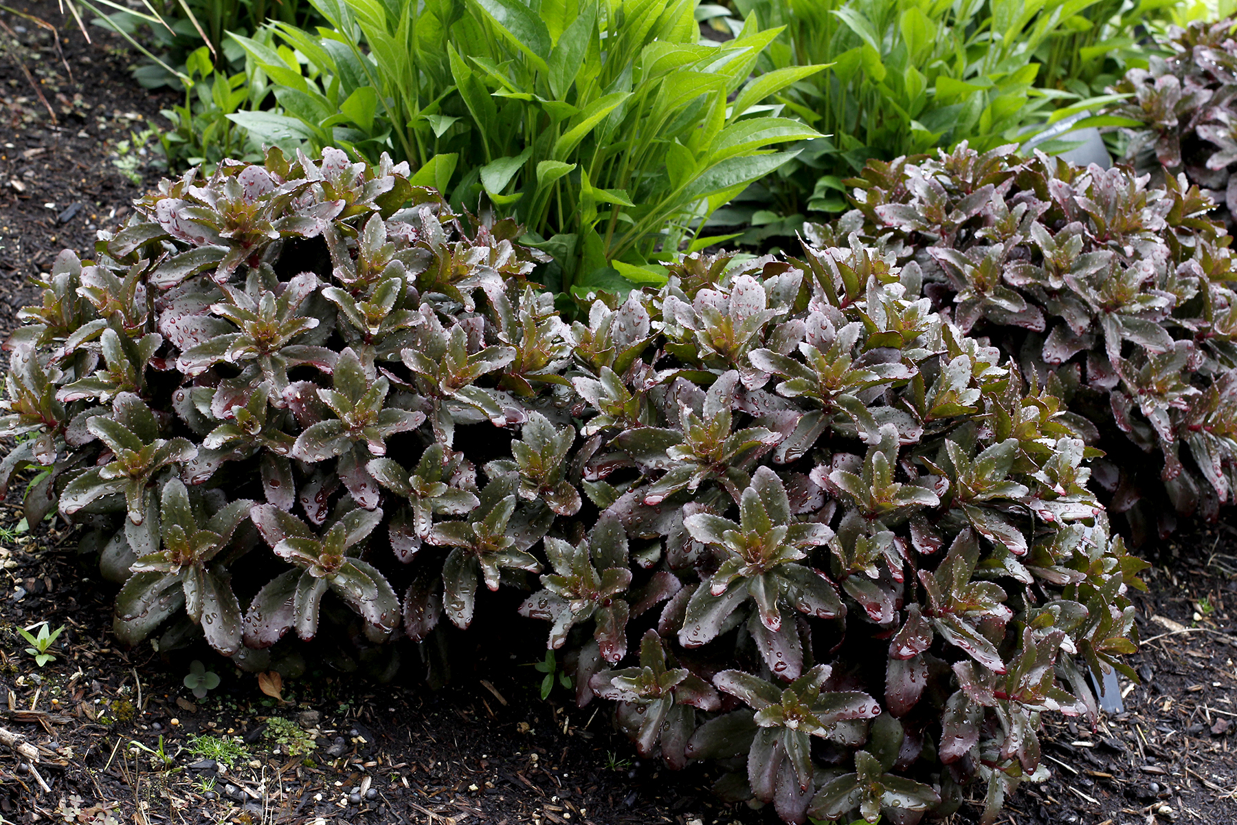 It has to be dark magic to give so many great characteristics in one plant – amazing huge inflorescences, a short and very upright habit, glossy purple black leaves, dark pink flowers, and multiple crowns. In addition, 'Dark Magic' has been remarkably disease free and long-lived.