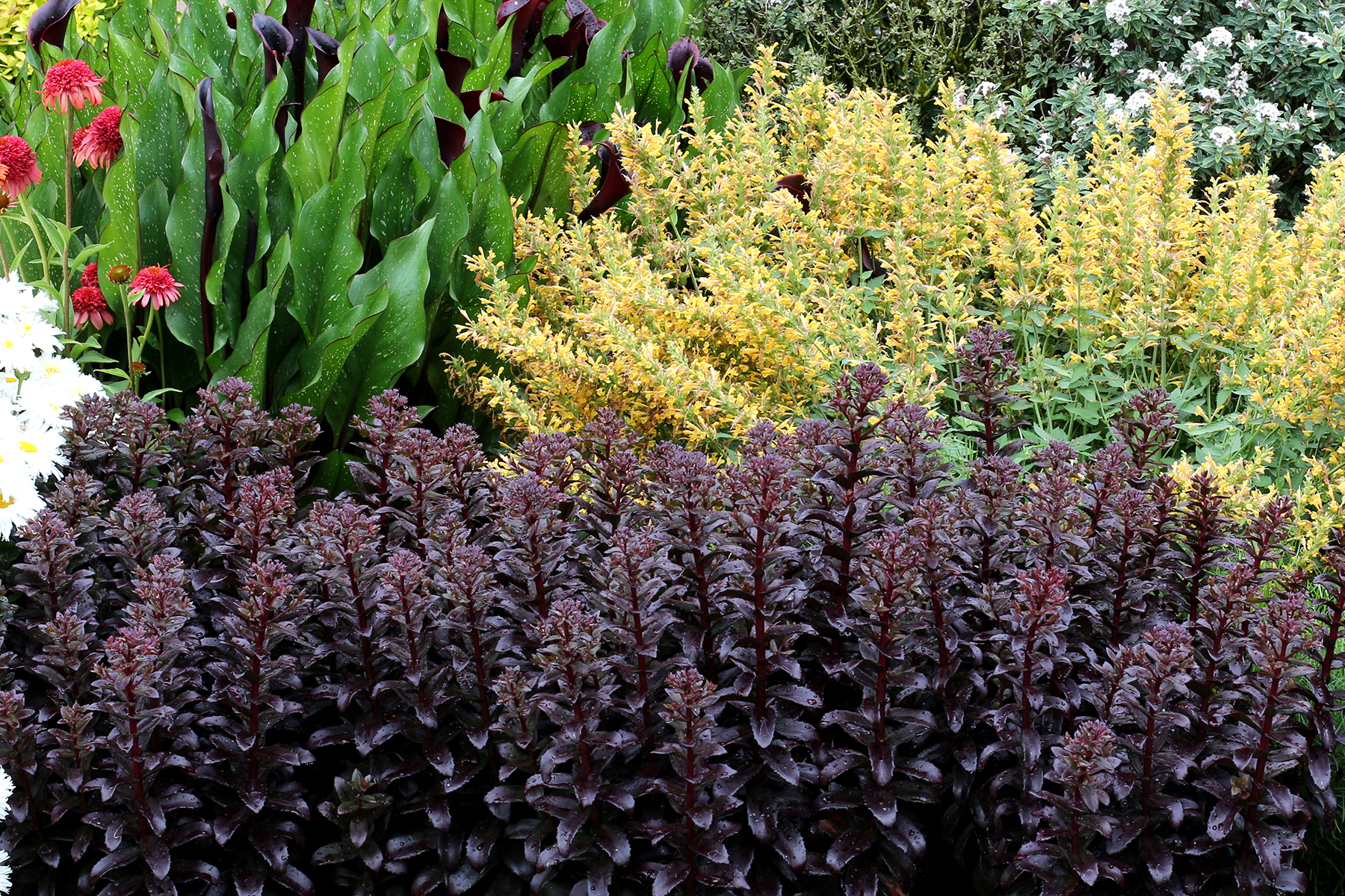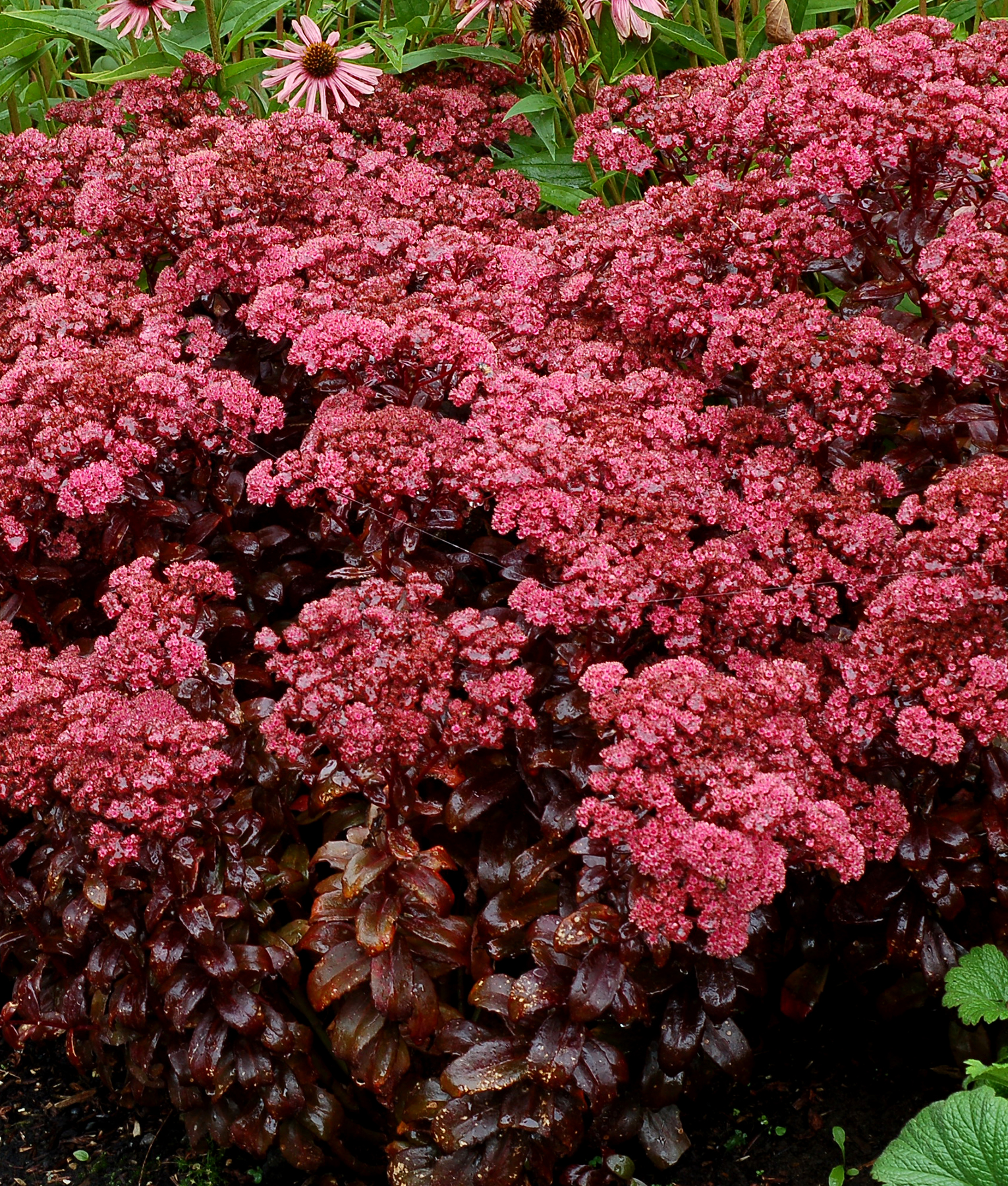 | How Different? | A favorite! Compared to 'Raspberry Truffle', 'Dark Magic' has darker leaves, is narrower, has more stems from the base, and much larger inflorescences. |