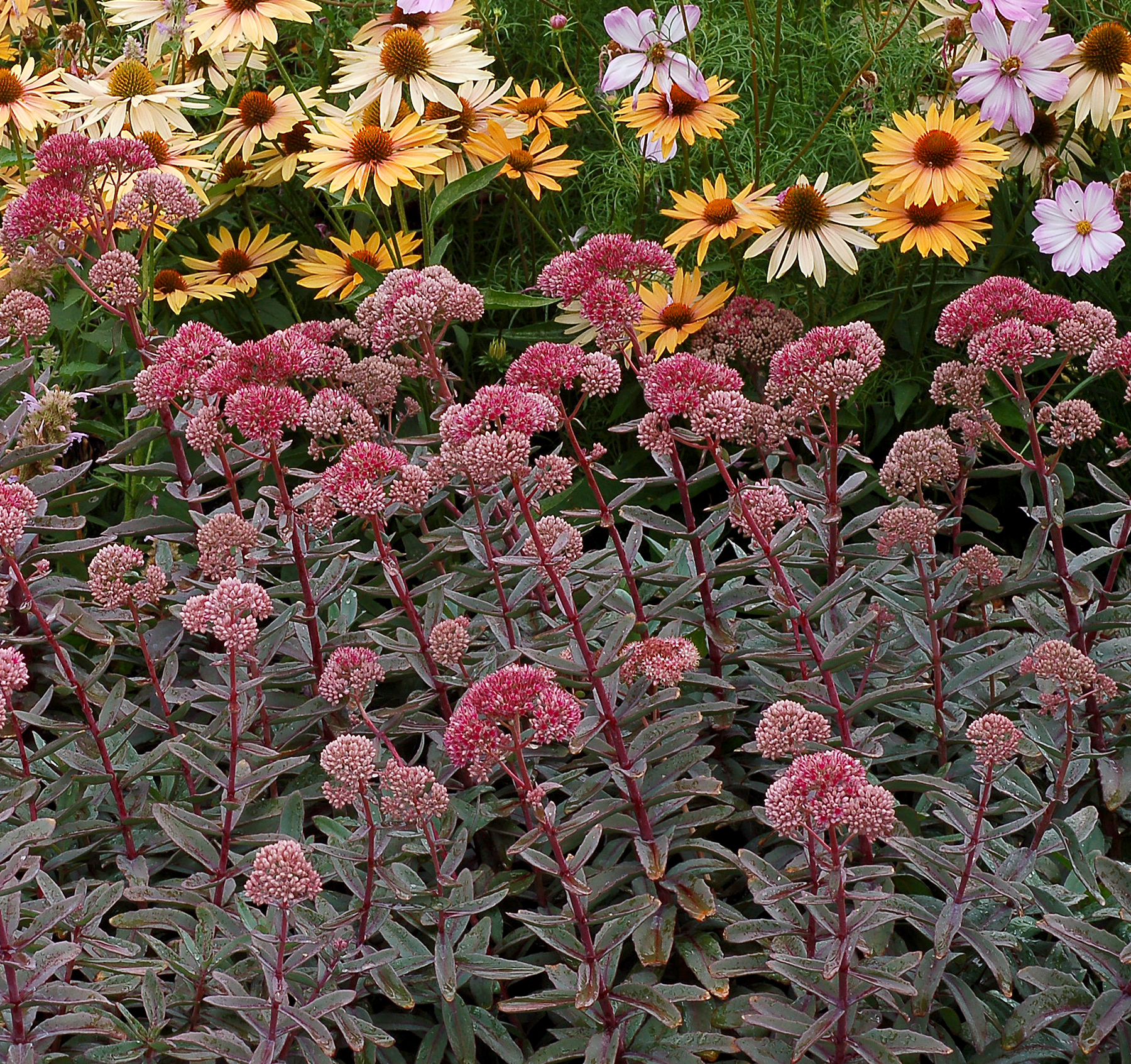 The bluest S. telephium you've ever seen. You will be very pleased with its lovely oblong, blue-grey leaves that tint purple in summer, its low mounding habit, and its amazing crown-formation. Additionally, it displays lovely rose pink flowers in late summer. Enjoy!