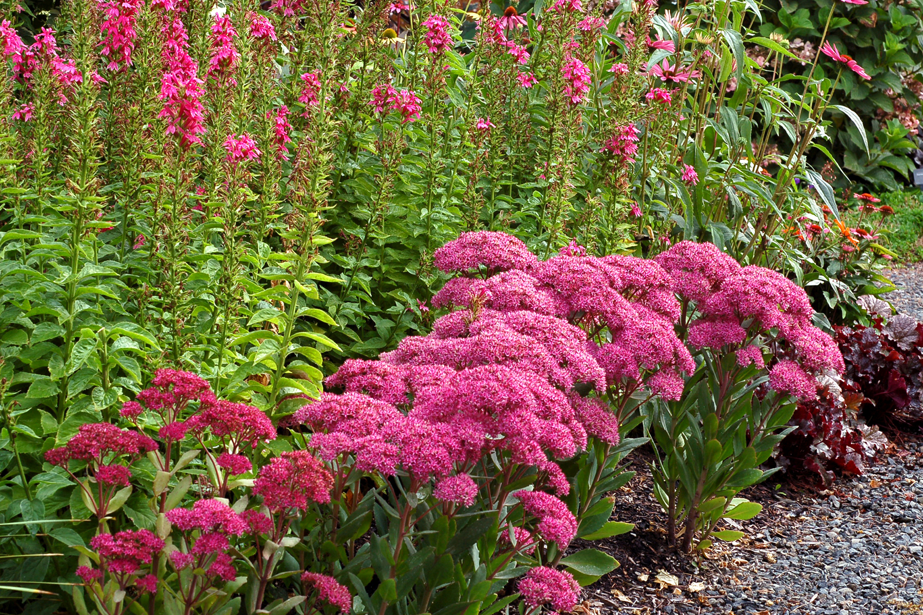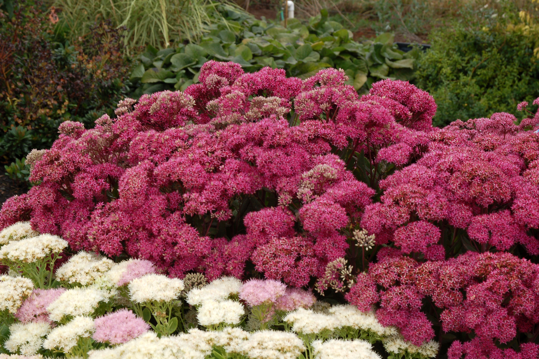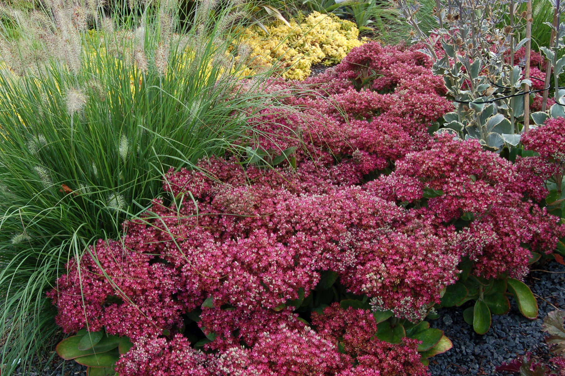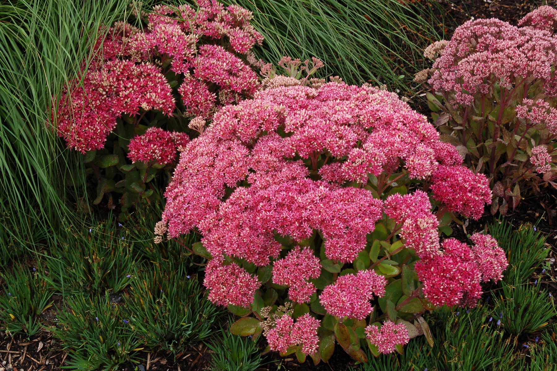 This dusky S. spectabile hybrid has tight foliage and strongly contrasting colors between its light buds and dark mauve flowers. Richer tones and better foliage than S. 'Brilliant'. Upright habit and short stature. Won an Award of Garden Merit from the RHS in 2006.