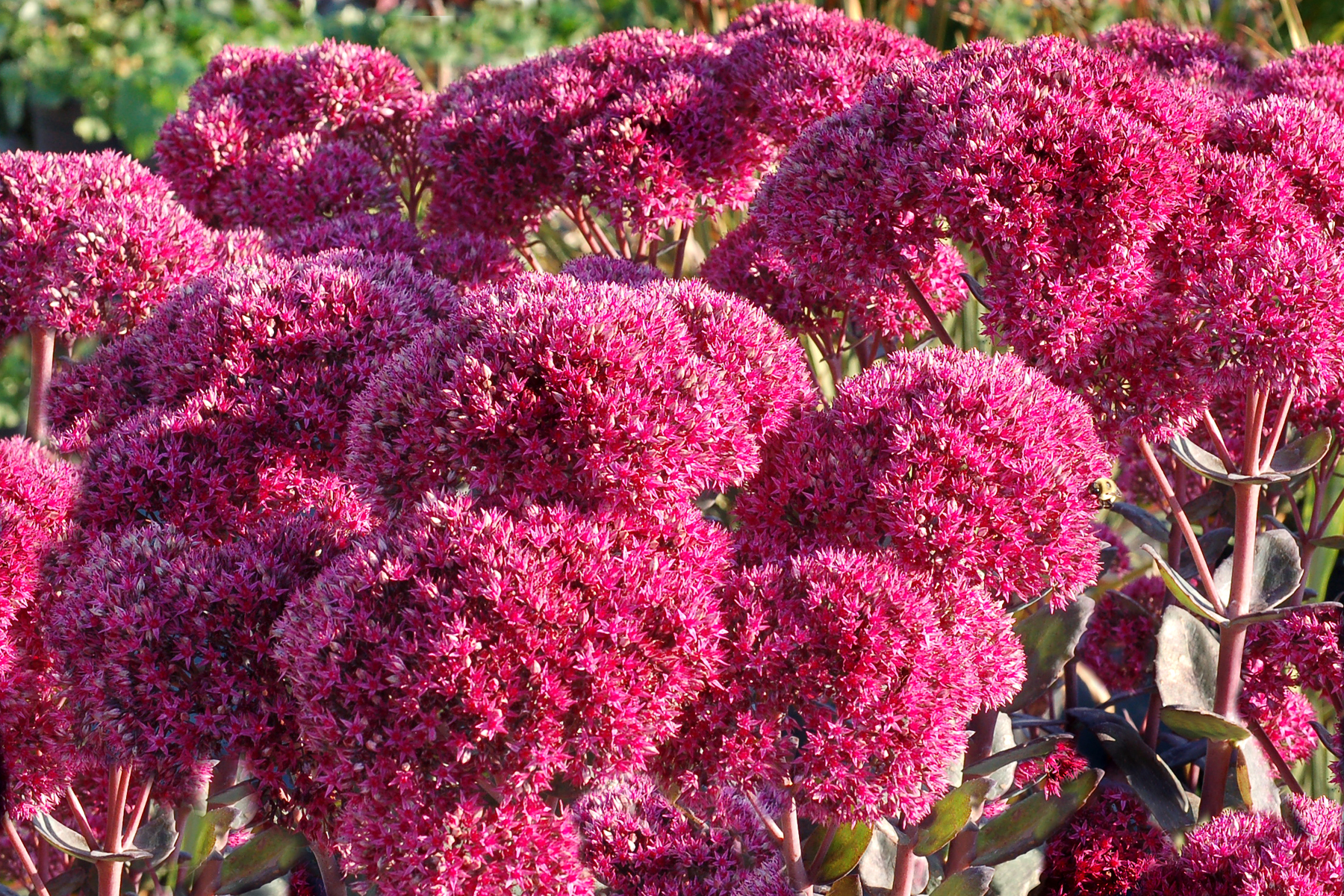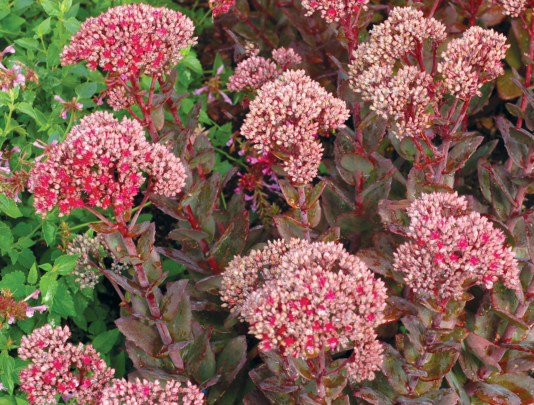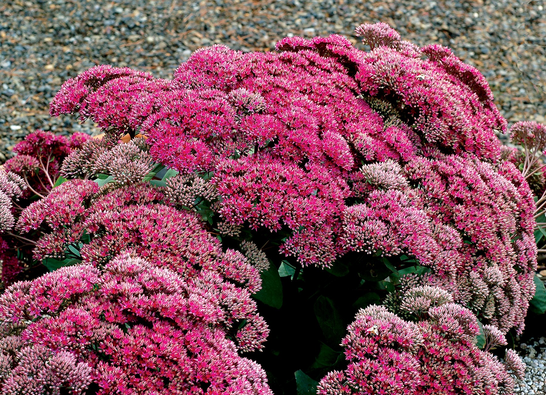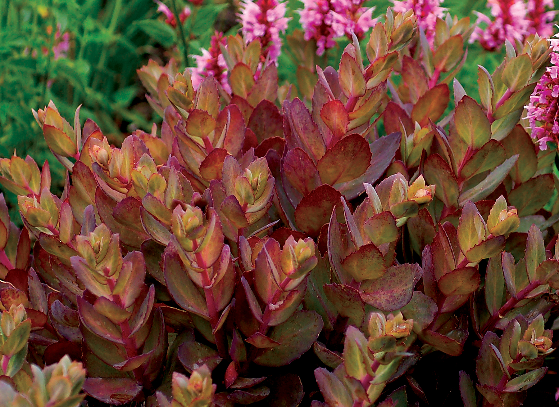 | How Different? | Hybrid Sedum with HUGE flower inflorescence and dark foliage. Very vigorous, short, and long lived. |