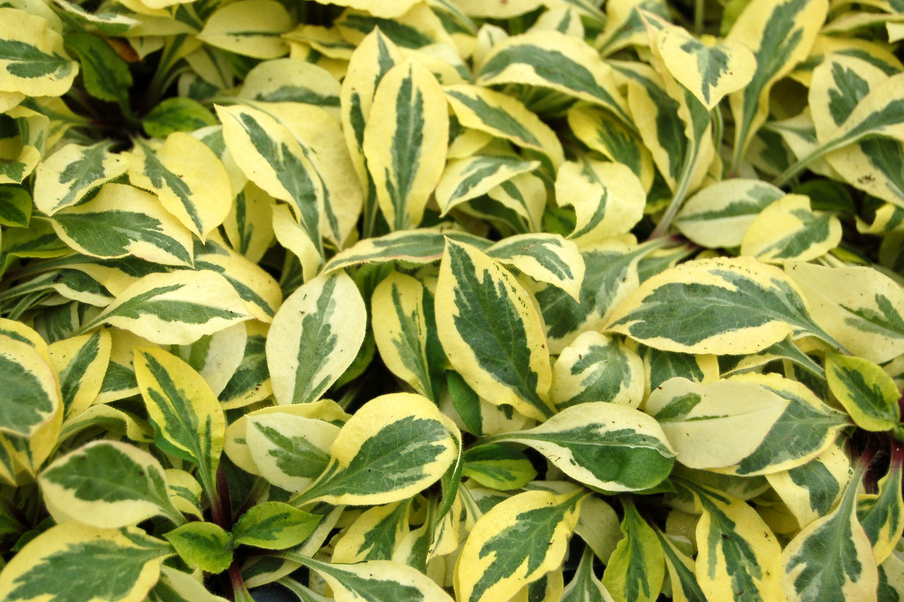 | How Different? | It has broad cream to white margins on green leaves and dark pink flowers. It is prettier, more vigorous, and more stable than 'Jade Valley'. |