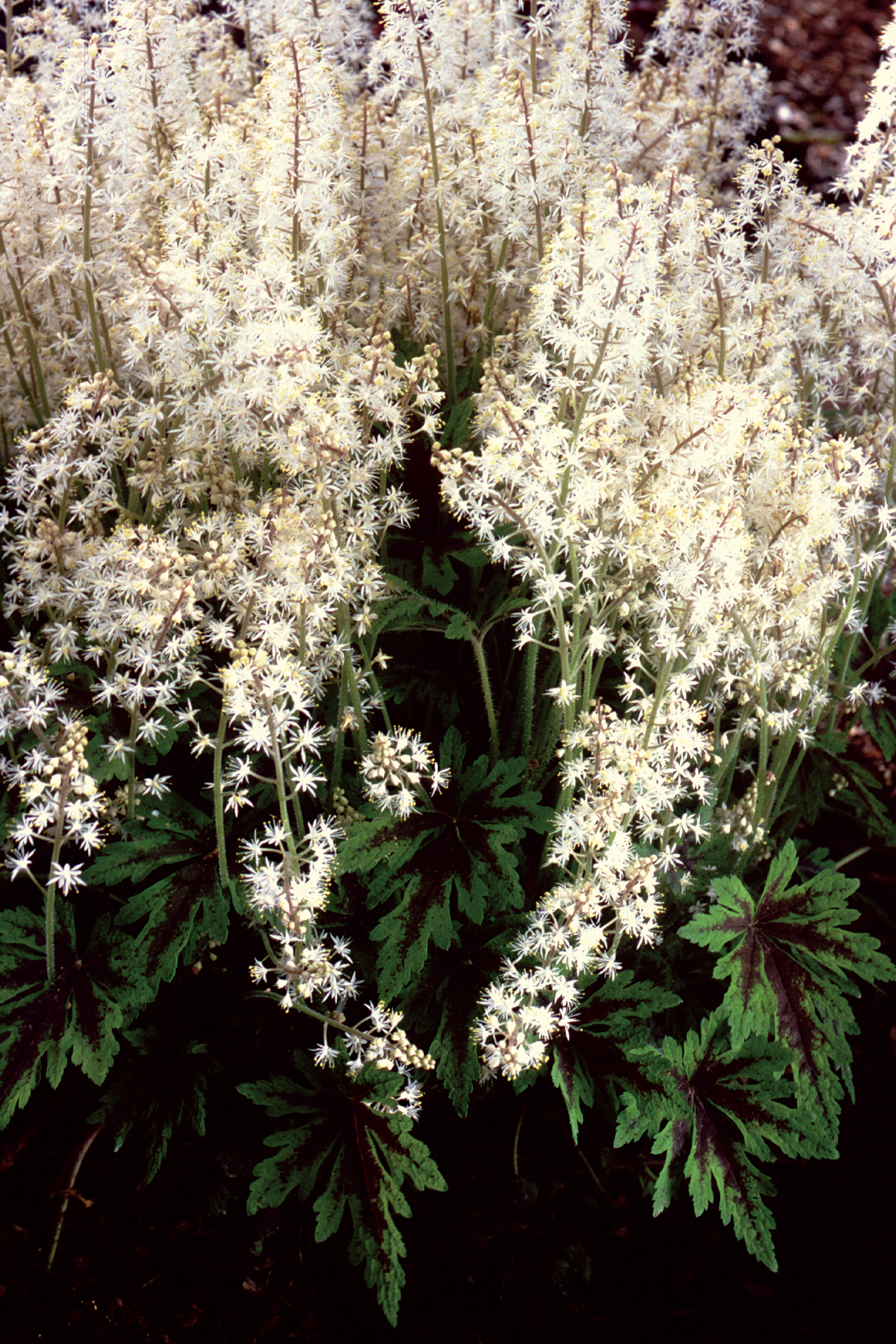 The beautifully cut and marked leaves are secondary to the massive display of creamy-white flowers which virtually hide the foliage for weeks. We have no other pure white flowering Tiarella that is so floriferous. Nice compact clumping habit and winter bronzing. Brought back by popular demand.