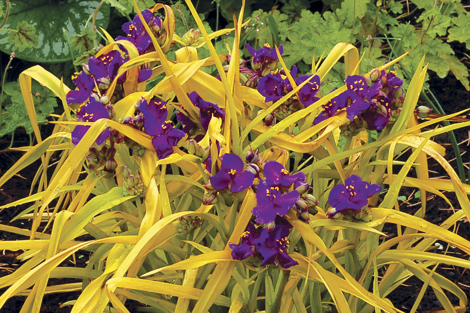 Regal purple, three petaled flowers sit above golden foliage on this royal charmer. A new flower color that contrasts beautifully with the compact, golden yellow mound of leaves. A fine addition to your mixed bed, containers, or the front of the border. Easy to grow with average garden soil and water.